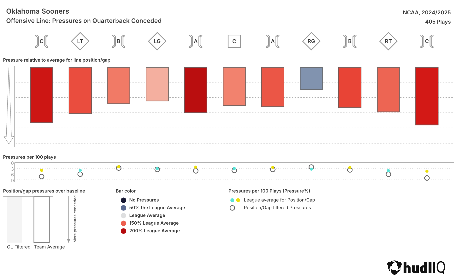 Using the Hudl IQ Line Pressures tool, we can see just how dreadful this group was last season.