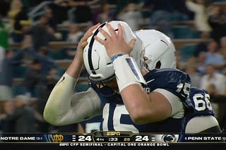 Notre Dame outlasts Penn State 27-24 to advance to the national title game.